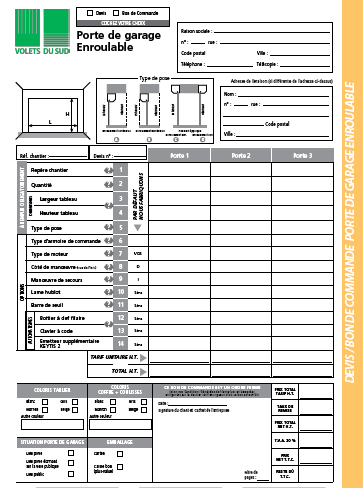 Bon de commande pour PORTE DE GARAGE ENROULABLE
